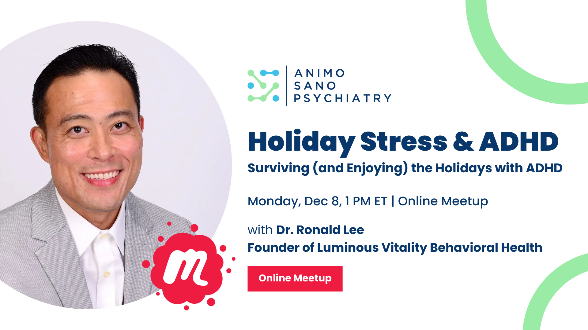 ![[MEETUP] Adults With ADHD Education Group: Holiday Stress & ADHD: Surviving (and Enjoying) the Holidays with ADHD 1 Copy of meetup cover for FB and LinkedIn events email newsletter](https://animosanopsychiatry.com/wp-content/uploads/2025/11/Copy-of-meetup-cover-for-FB-and-LinkedIn-events-email-newsletter-1024x576.png)